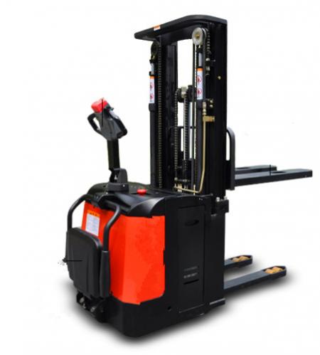 2,電動(dòng)托盤(pán)堆垛叉車(chē):該產(chǎn)品承載能力為 1.0~1.6噸,作業(yè)通道寬度一般為2.3~2.8米,在結(jié)構(gòu)上比電動(dòng)托盤(pán)搬運(yùn)叉車(chē)多了門(mén)架,貨叉提升高度一般在4.8米內(nèi),主要用于倉(cāng)庫(kù)內(nèi)的貨物堆垛及裝卸;